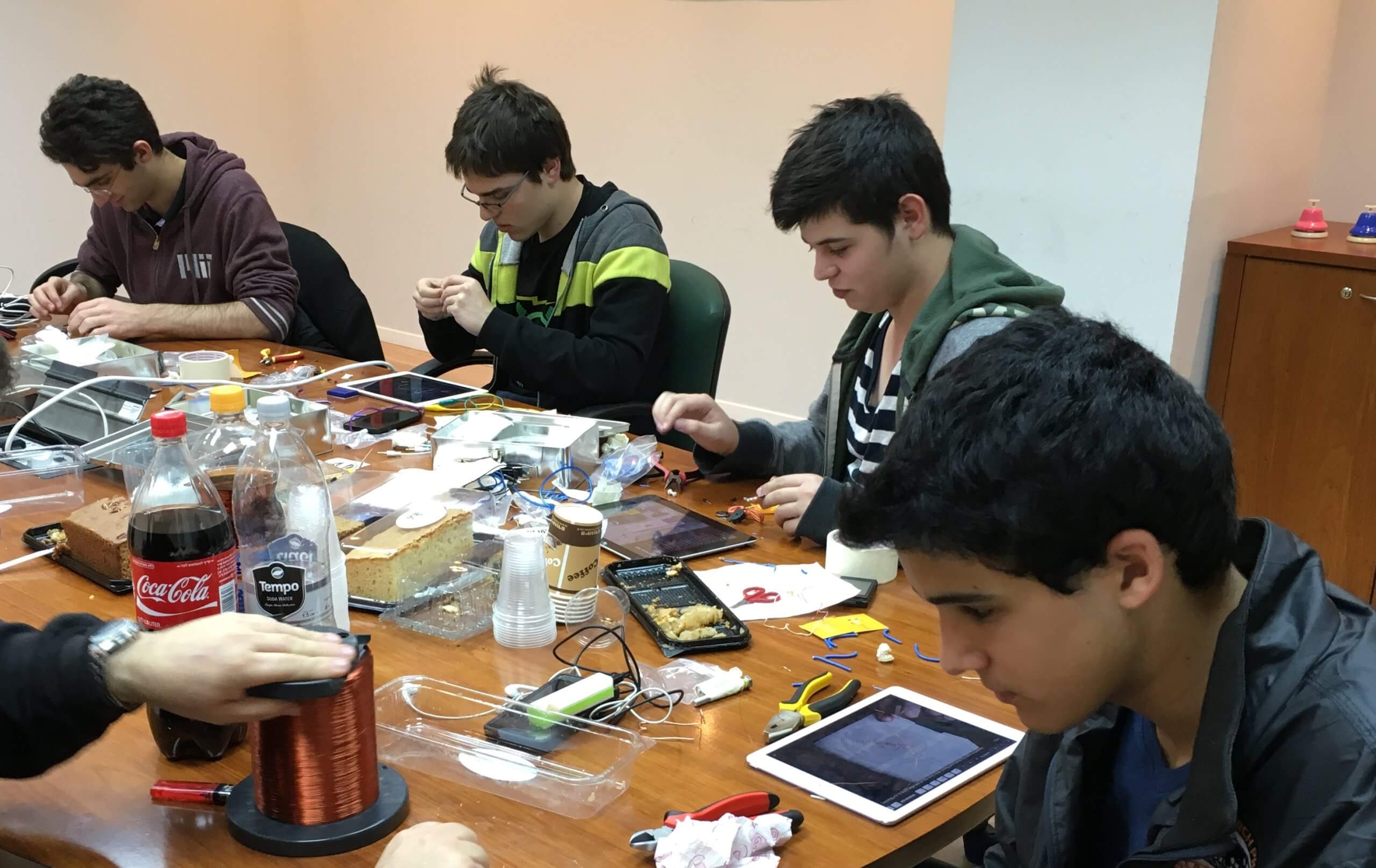 Our latest workshop was held yesterday, with a small team of young councilors from the GreenBlitz ‘FIRST’ robotic competition team. Even though these skilled youngsters are not new to electronics and are familiar with complex mechanism, they were smiling the entire time – constructing hand-made earphones and squeaking musical pencils.